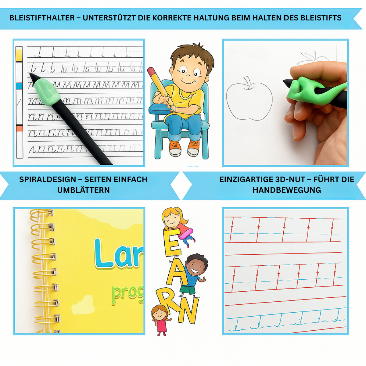 Dieses Buchset führt Ihr Kind in den Prozess des Schreibens ein. Lassen Sie die Kinder den Linien mit dem Stift folgen, um ihre Feinmotorik zu entwickeln.