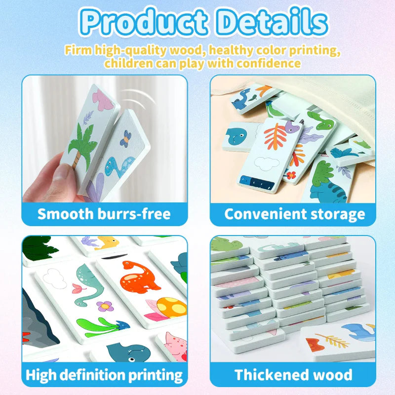 Kinder spielen oft mit Spielzeugen, die ihre Kreativität nicht ausreichend anregen. DinoDomino inspiriert zu fantasievollem Spiel mit seinen fröhlichen Dinosaurierformen, mit denen Kinder stundenlang stapeln, bauen und ihrer Vorstellungskraft freien Lauf lassen können.