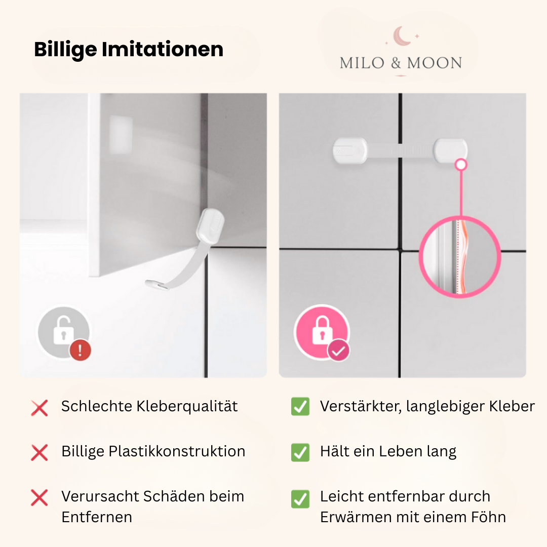 Milo & Moon – Unsichtbare Sicherheit – Kindersichere Schrank- und Schubladensicherungen (8 Stück)