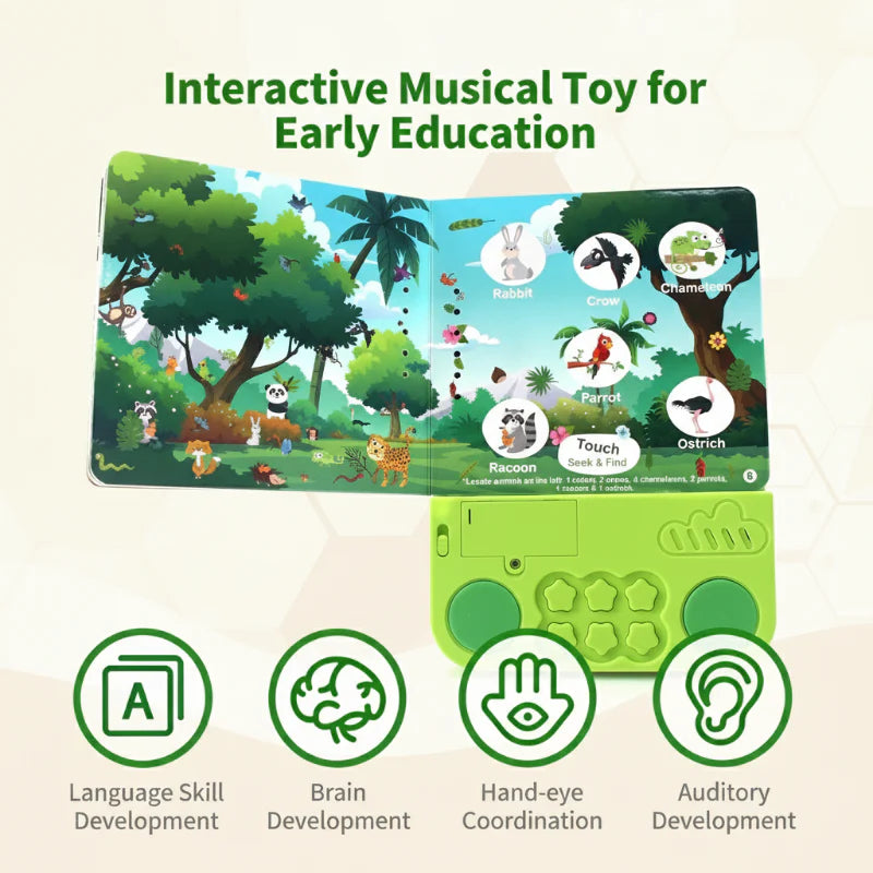 Dieses Buch kombiniert Musik, Geräusche und interaktive Spiele, um die kognitive Entwicklung Ihres Kindes zu fördern. Es unterstützt die Erkennung von Tieren und sorgt dafür, dass Lernen spannend und unterhaltsam bleibt.